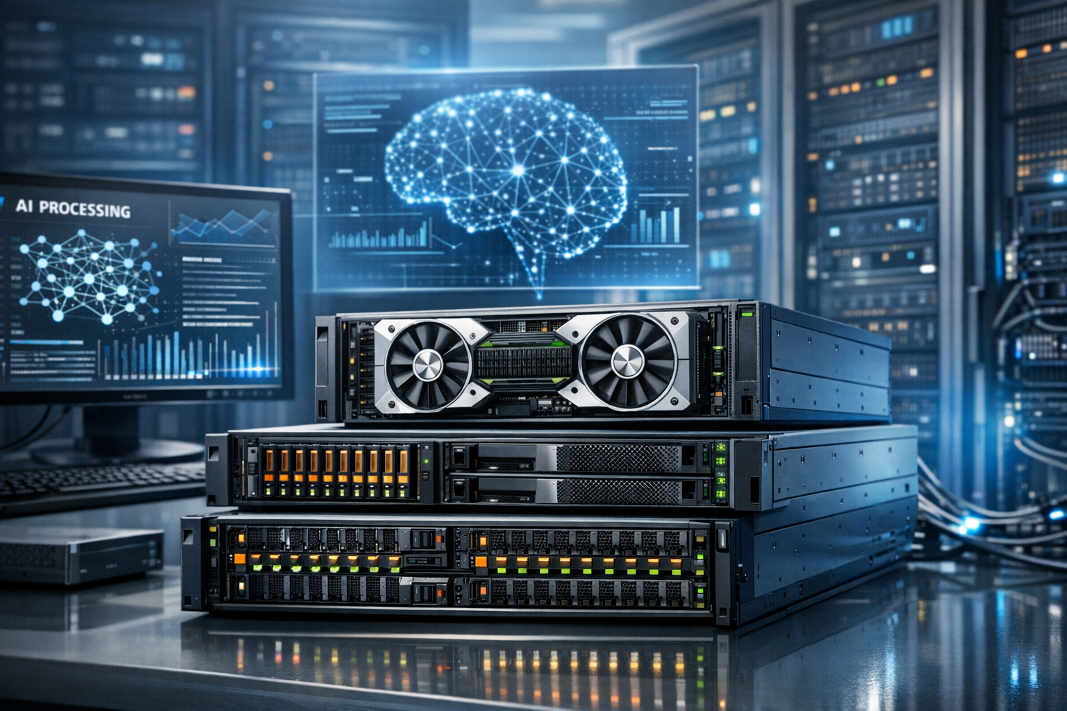 Performanța unui server AI este determinată în primul rând de GPU. Pentru aplicații complexe, trebuie să urmărești: